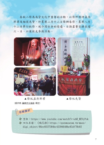 動之一,有別於樂人平日在館 郎君及緬懷先賢,於農曆二月十二日舉辦春祭,農曆八月