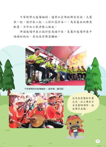 牛犁歌陣的的後場編制。(提供者:趙守彥)