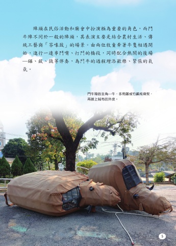 鬥牛陣充滿了農民生活    ―鑼、鈸、鼓等伴奏,為鬥牛的過程增添歡樂、緊張的氣